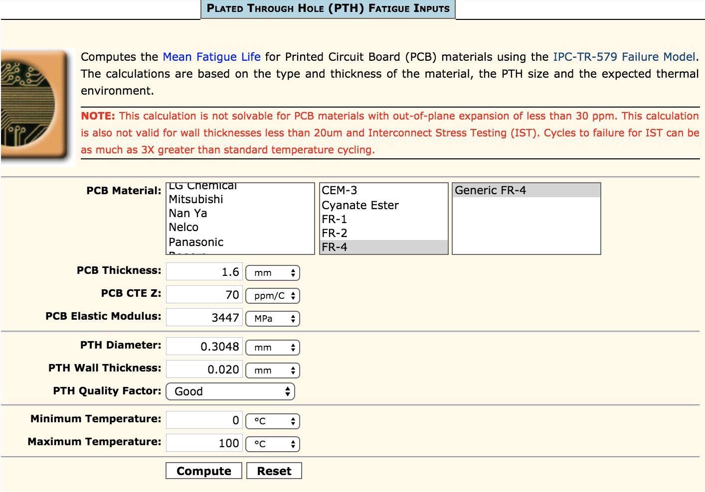 Dfr Solutions On Twitter The Plated Through Hole Fatigue Calculator Computes The Mean Fatigue Life For Printed Circuit Board Materials Based On Material Type And Thickness Pth Size And Thermal Environment Try