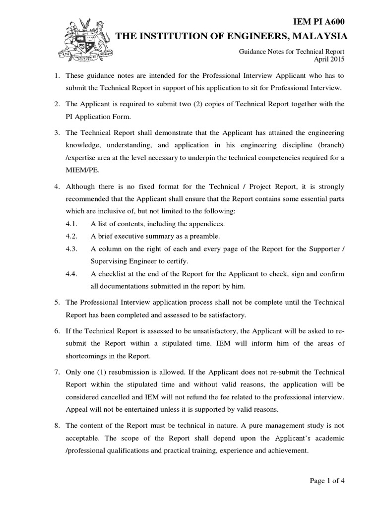 Revised September 2011 4 Principal Interviewer means an IEM Corporate Member assigned by the Professional Interview Board to conduct the Professional Interview. Technical Report Samples If evidence are respective of seeking Incorporated or Chartered. Having reviewed your qualifications.